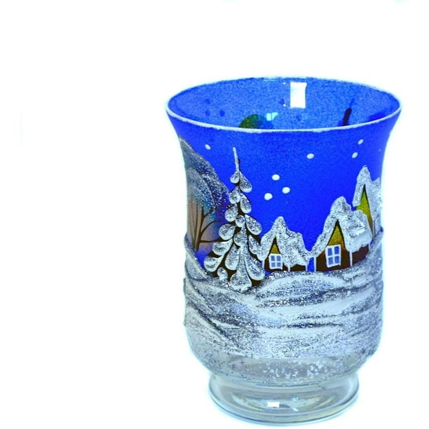 12 Inch High Candlestick Holder Christmas New Year Design Glass Candleholder Blue Winter Candle Stand Walmart Com Walmart Com