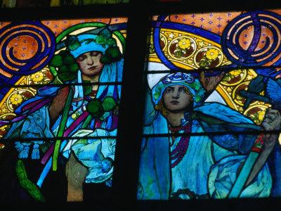 Stained Glass Windows With Art Nouveau Mucha Designs In St Vitus Cathedral Prague Czech Republic Photographic Print Richard Nebesky Art Com