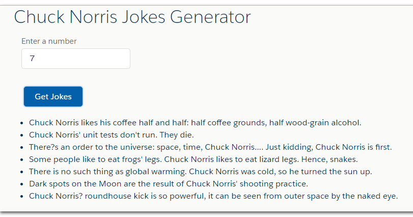 Chucknorrisio is a free JSON API for hand curated Chuck Norris facts Chuck Norris facts are satirical factoids about martial artist and actor Chuck Norris that have become an Internet phenomenon and as a result have become widespread in popular culture The 'facts' are normally absurd hyperbolic claims about Norris' toughness, attitude. Finished Website using the Chuck Norris Jokes API Have a few chuckles at some of the jokes which are on the Chuck Norris API URL Chuck Norris Jokes (Opens in New Tab) This is the finished website, the website is built using PHP, HTML, SCSS and JavaScript. Chuck Norris IO chucknorrisio is a free JSON API for hand curated Chuck Norris facts.